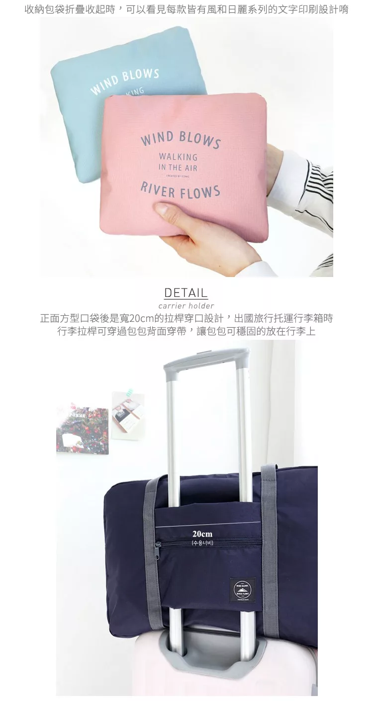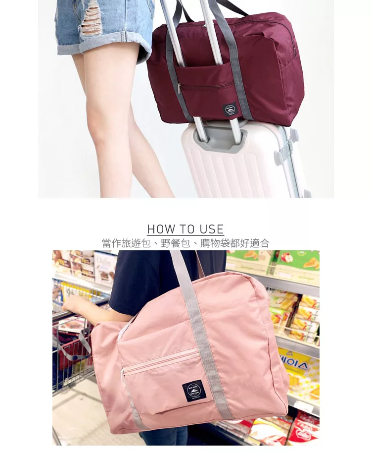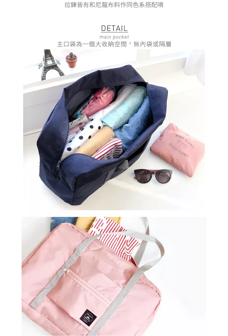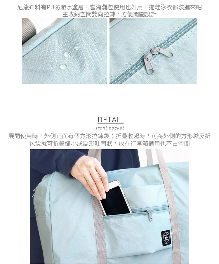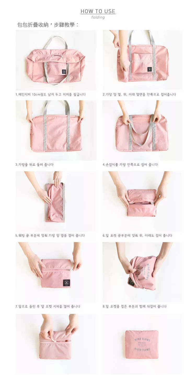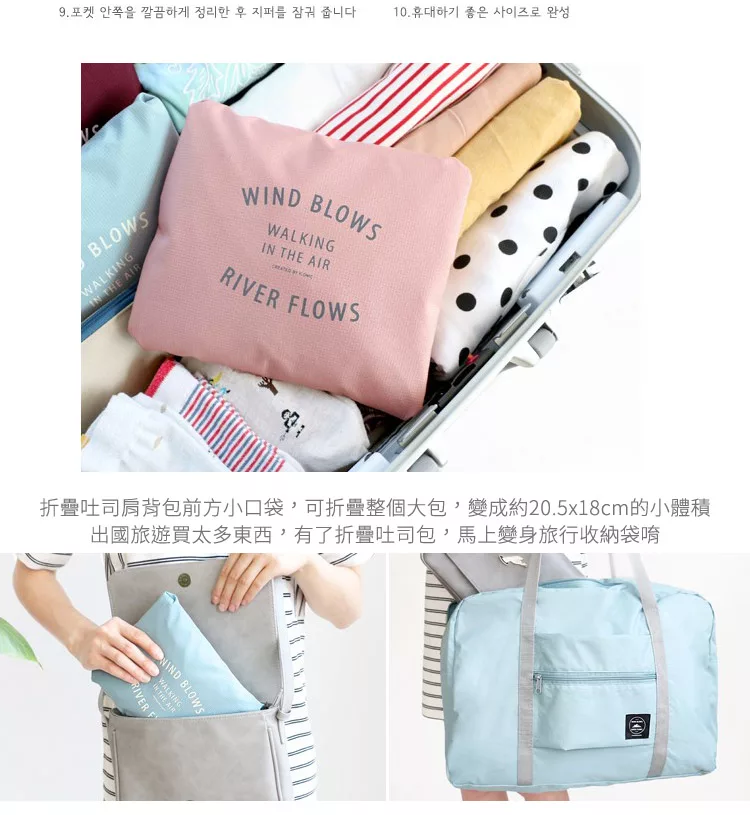包袋可折疊縮小成扁形吐司狀,放在行李箱備用也不占空間。