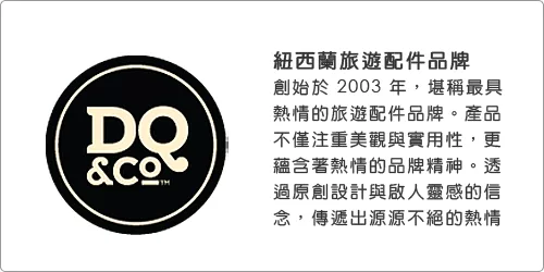 What 介紹:創始於 2003 年,DQ Company 堪稱最具熱情的旅遊配件品牌。產品線不僅外顯美觀與實用性,更重要的是蘊含的熱情與正面的品牌精神。揉合創立者的人生態度,透過原創設計與啟人靈感的信念,傳遞出源源不絕的熱情;品牌經銷早已佈及世界多國,希冀透過旅遊展開不同視野。