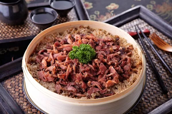 採用自家的鴨肉料理,包覆淡淡清香的油飯,鴨肉湯汁滲入香濃的糯米飯,每一口都充滿香氣且入口即化。
