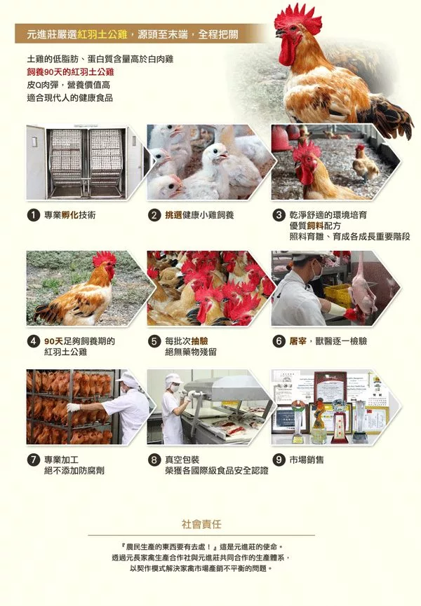 選用飼養100天以上的紅羽公雞,肉質鮮美、口感紮實,完全不腥膩,是值得再三品嚐的美食料理。