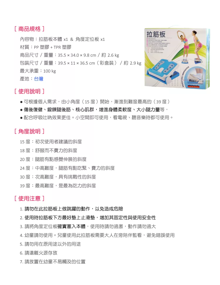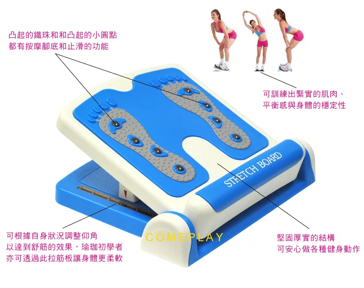 使用此美體健身舒筋板可增進身體的柔軟度,也有助於達成部份瑜珈動作。