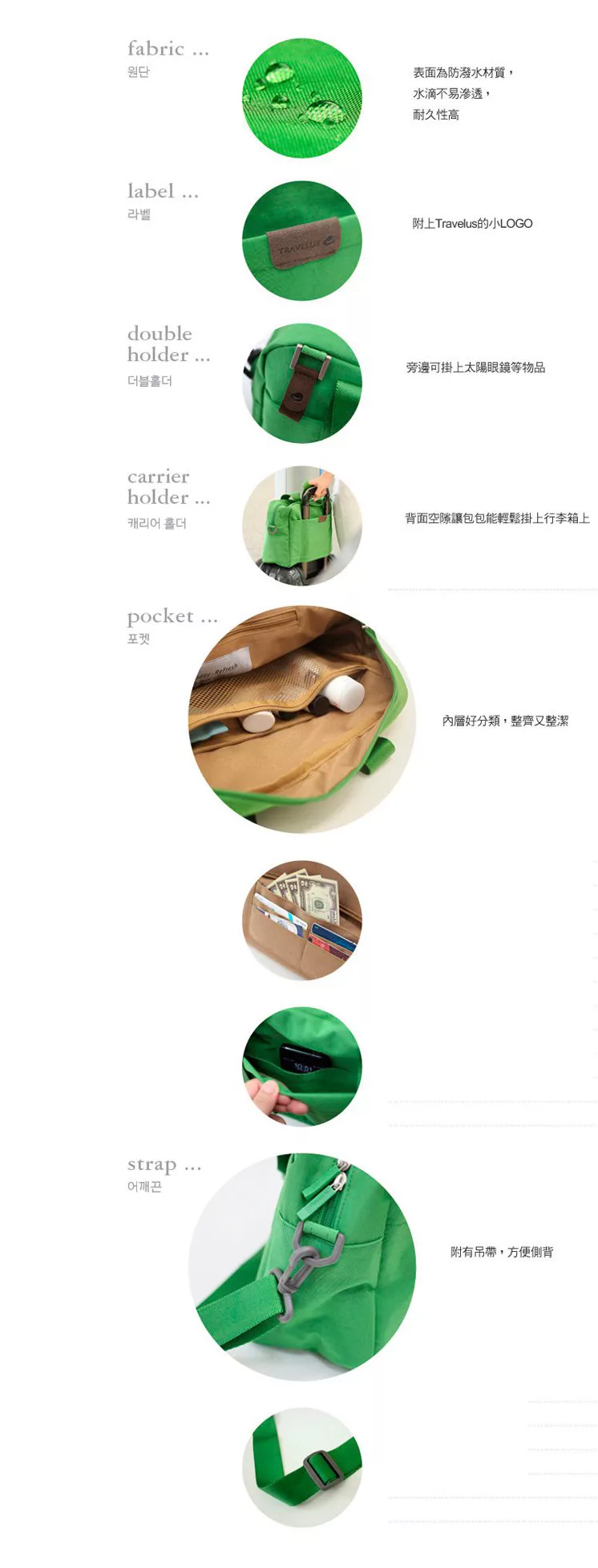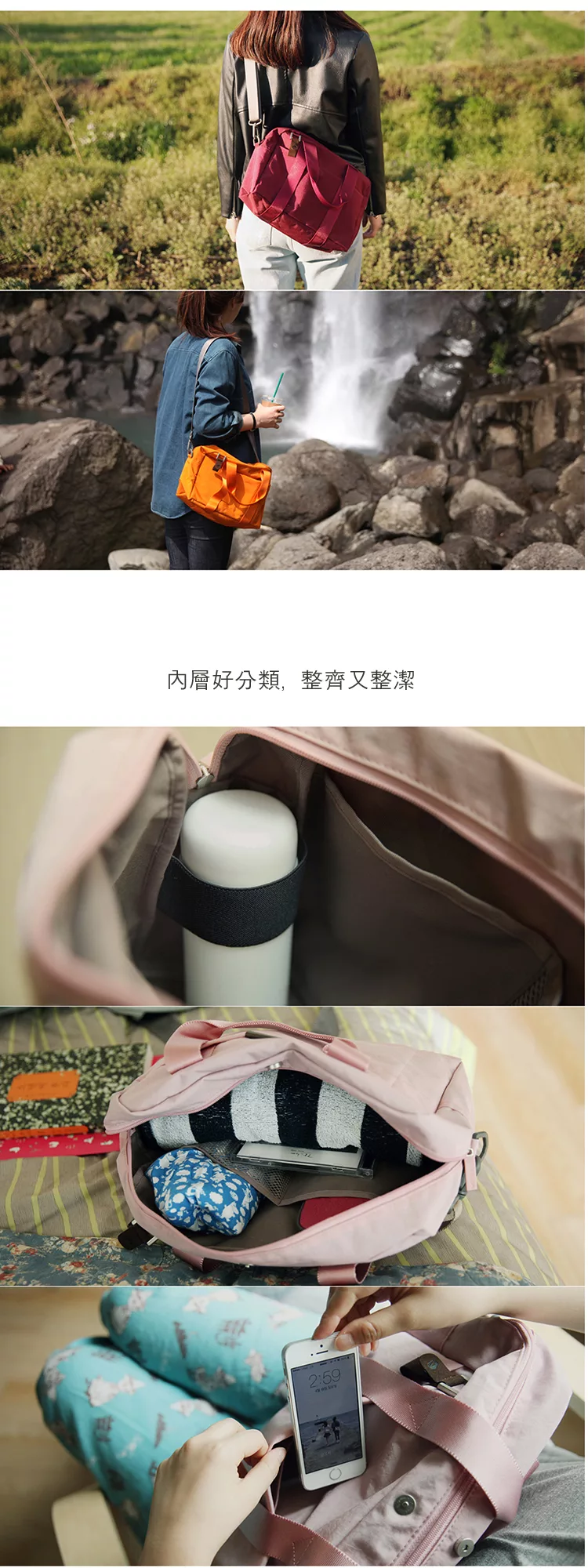 多層大小口袋收納方便,讓你輕鬆的一日遊!