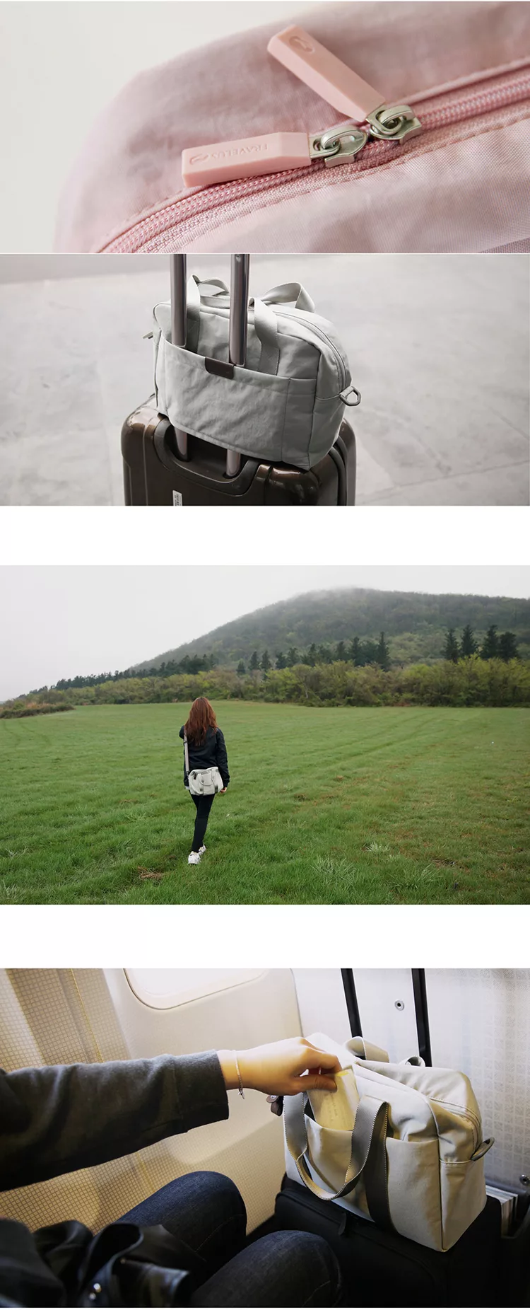 背面空間設計讓包包能輕鬆掛上行李箱上