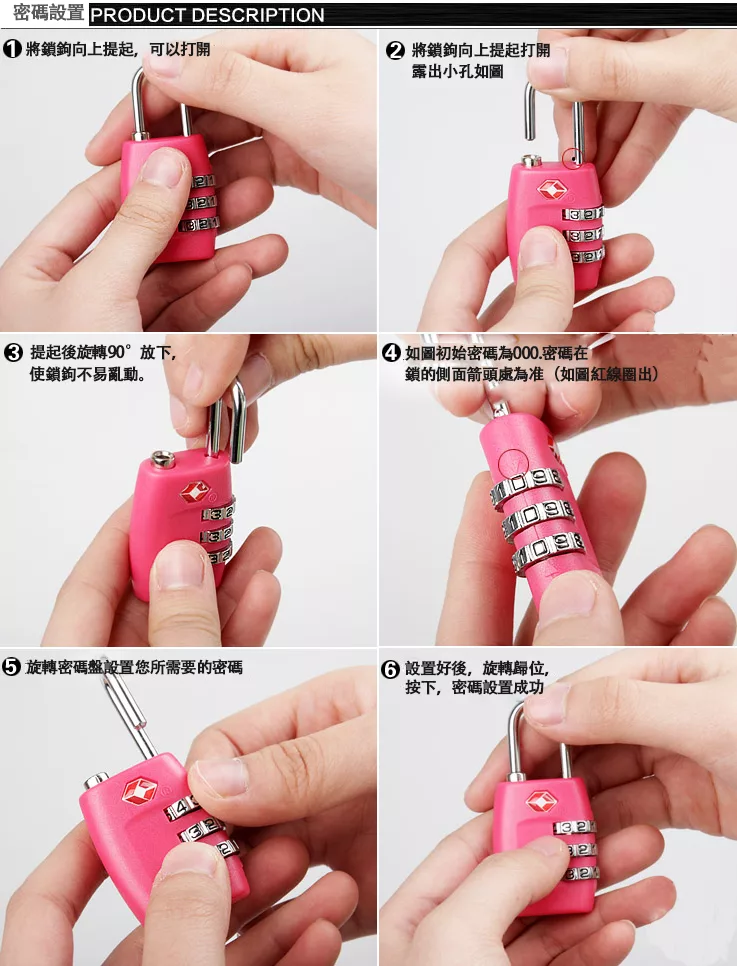 5.???? 允許TSA的安檢人員對行李進行不破壞鎖的安全檢查和重新鎖定。